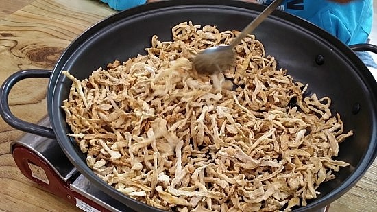 빵가루를 많이 묻혀서 바삭바삭하게 한다고 손으로 꼭꼭 눌러주네요