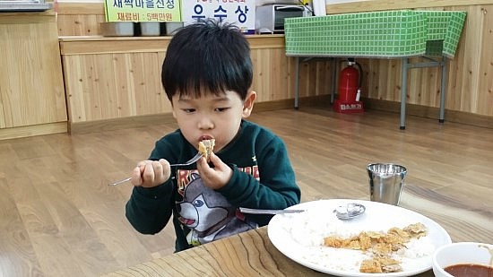 돈까스 매니아인 울 시운이는 폭풍 흡입하는중이에요