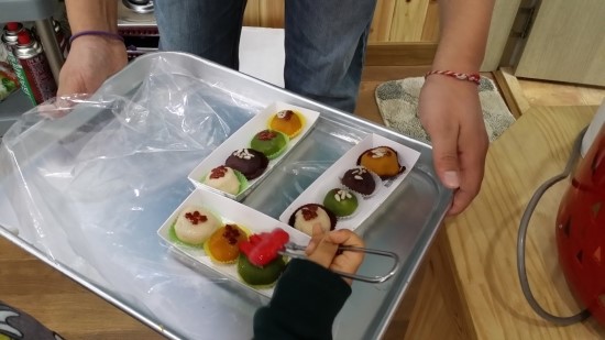 앙금은 하얀색, 초록색, 노란색 등 색도 다양하고 색깔도 예뻐요