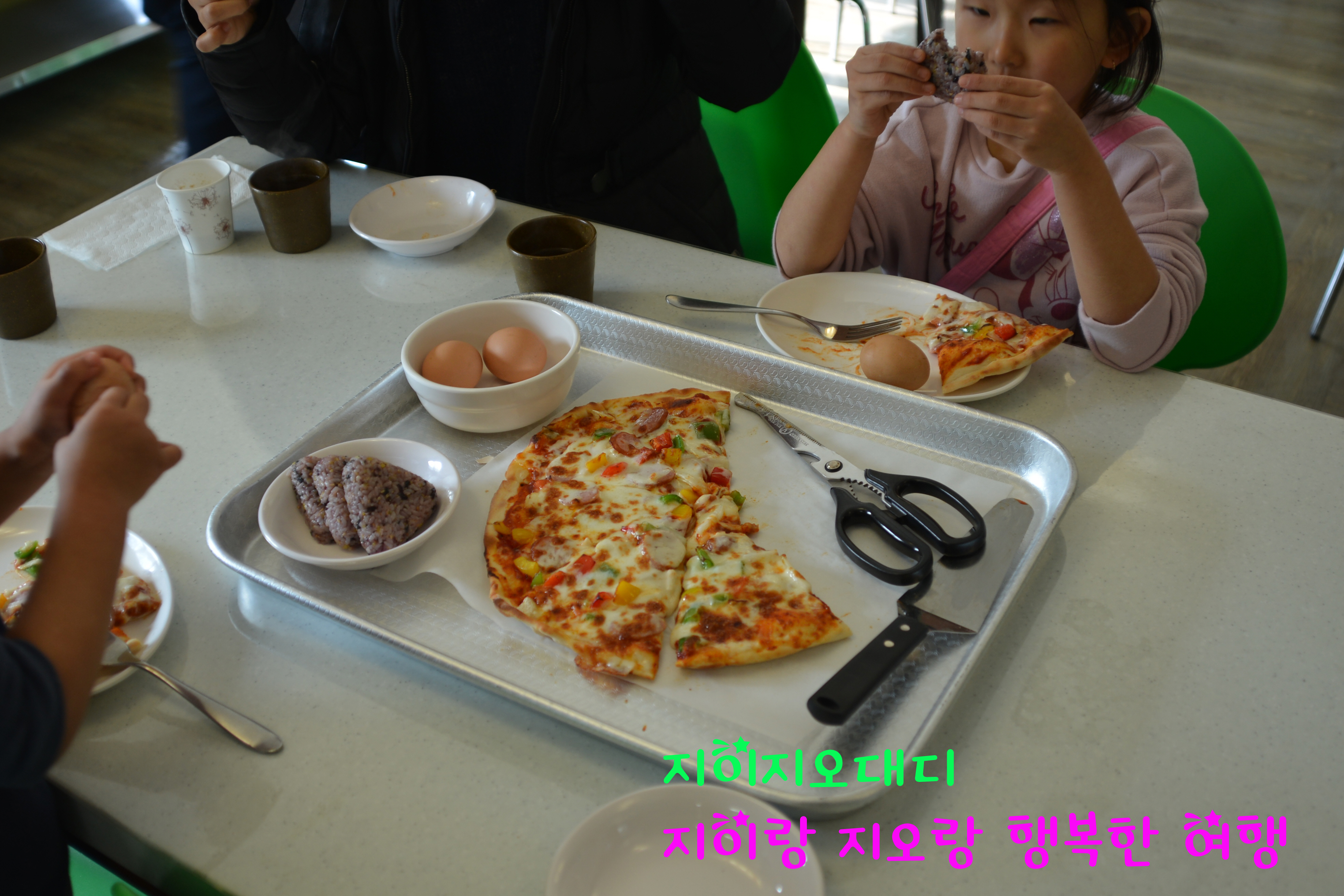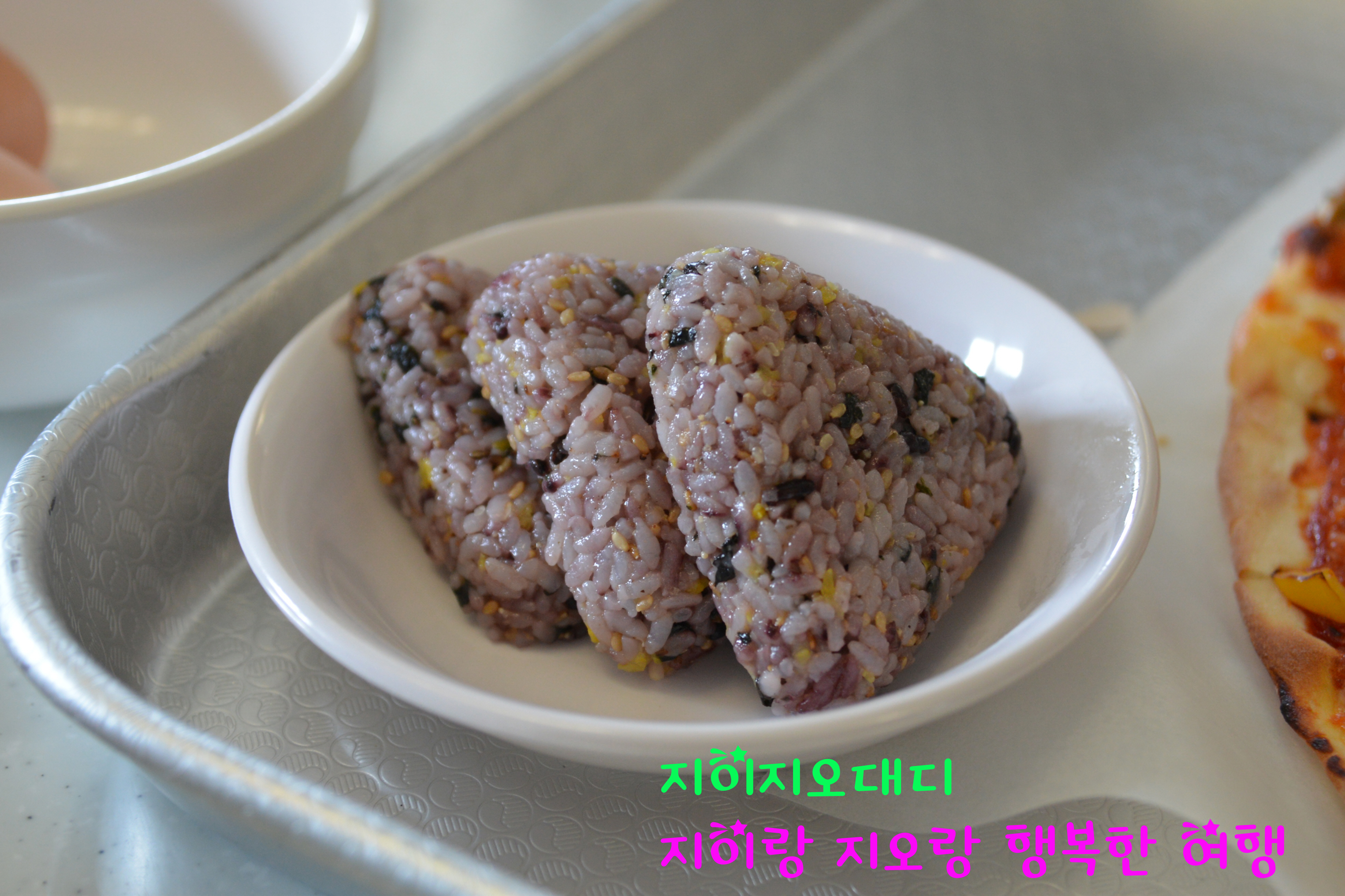 피자만들기 체험을 하면 직접 구운 달걀과 주먹밥이 서비스로 따라 나옵니다..