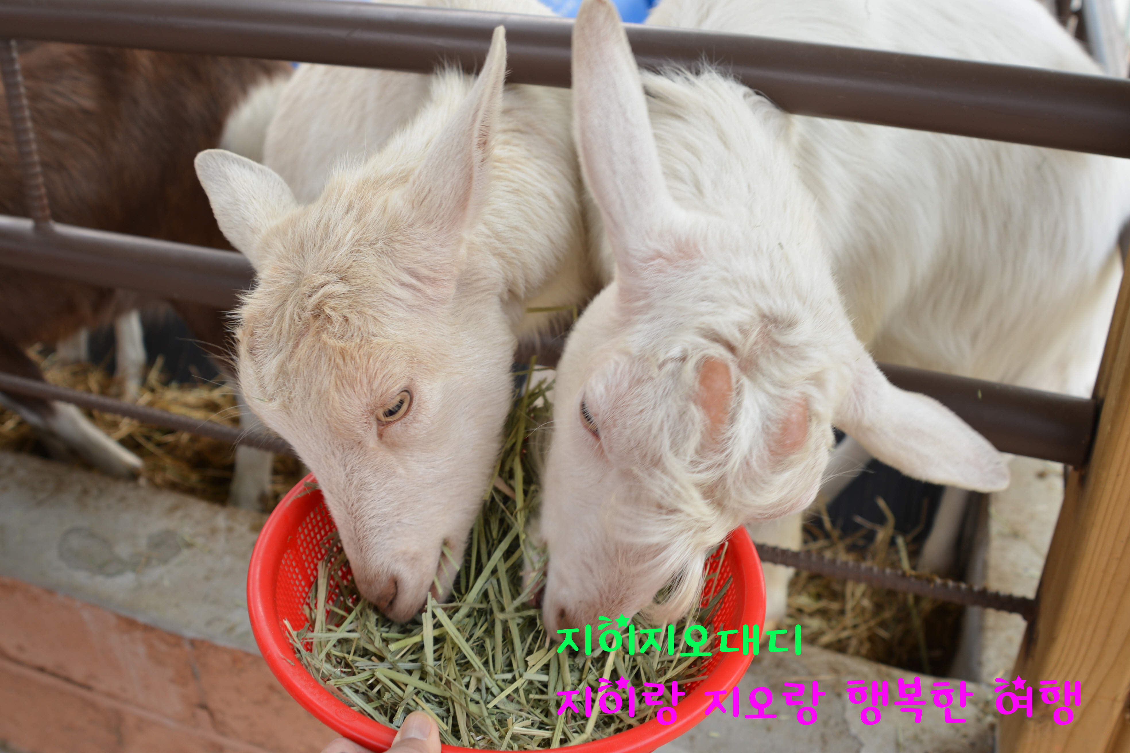 양, 염소, 산양, 조랑말, 당나귀에게 먹이를 주는 체험입니다.