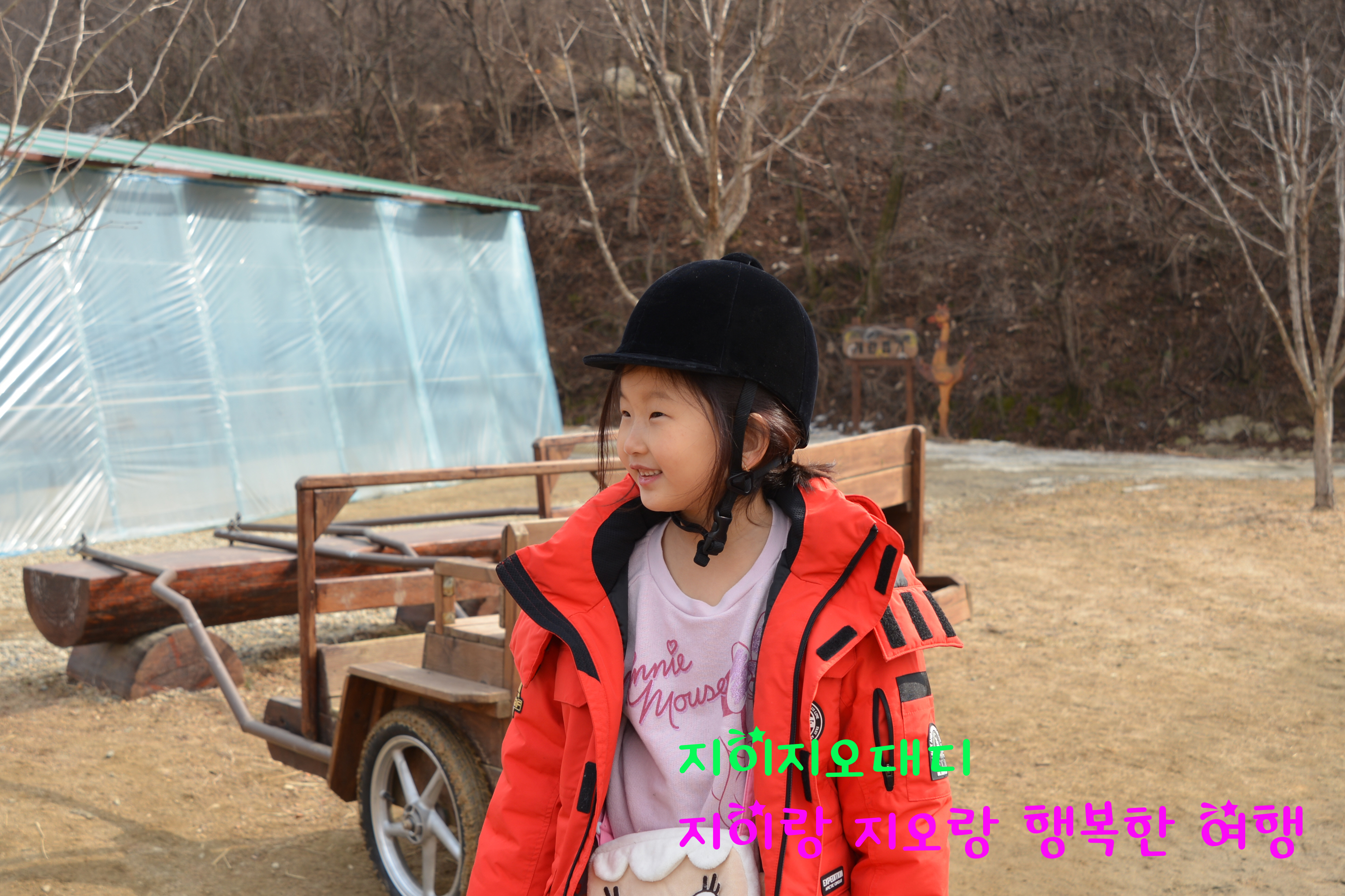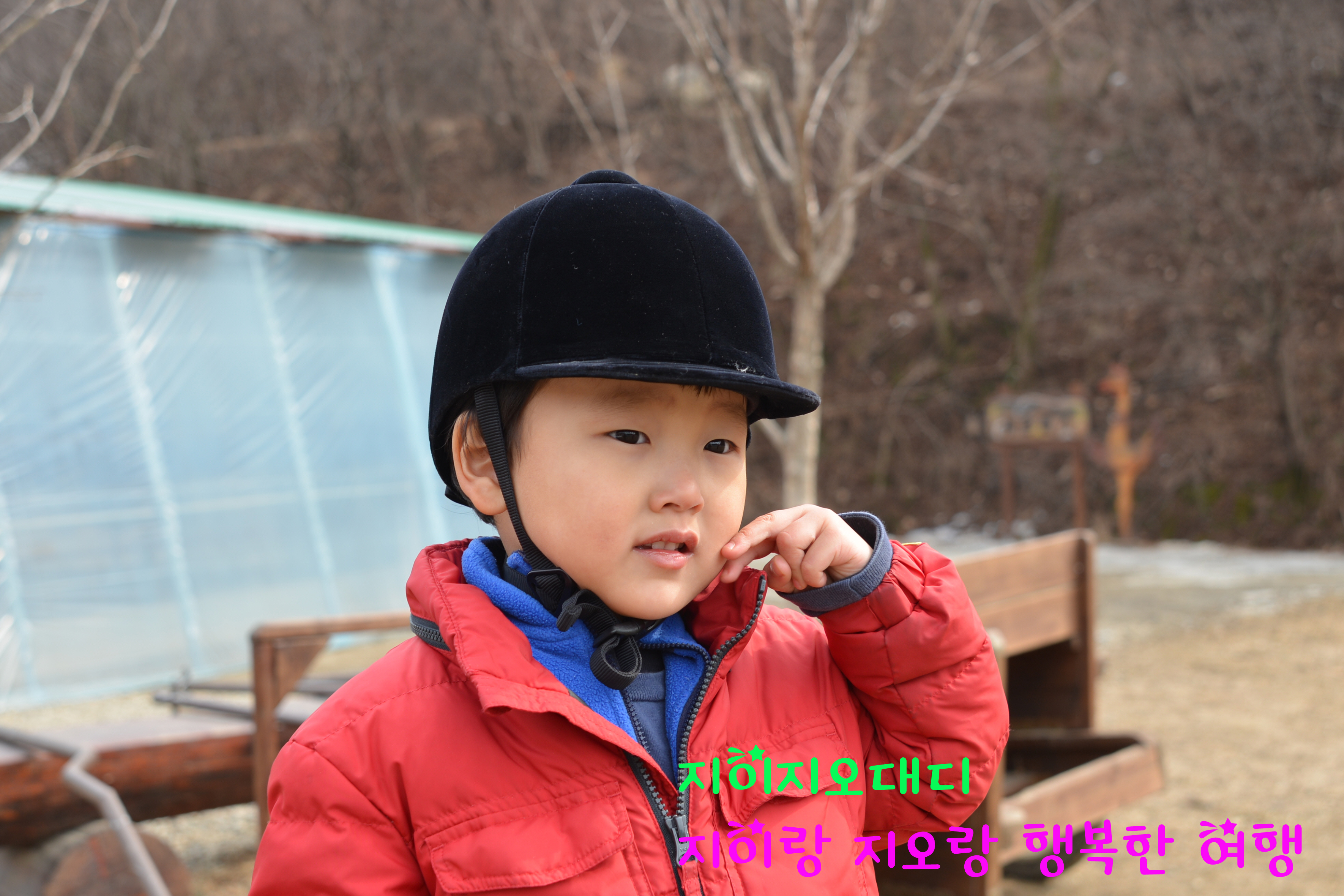 안전모를 쓰고 도우미의 도움을 받아 평지 승마와 약간의 경보도 체험해 봅니다 ^^