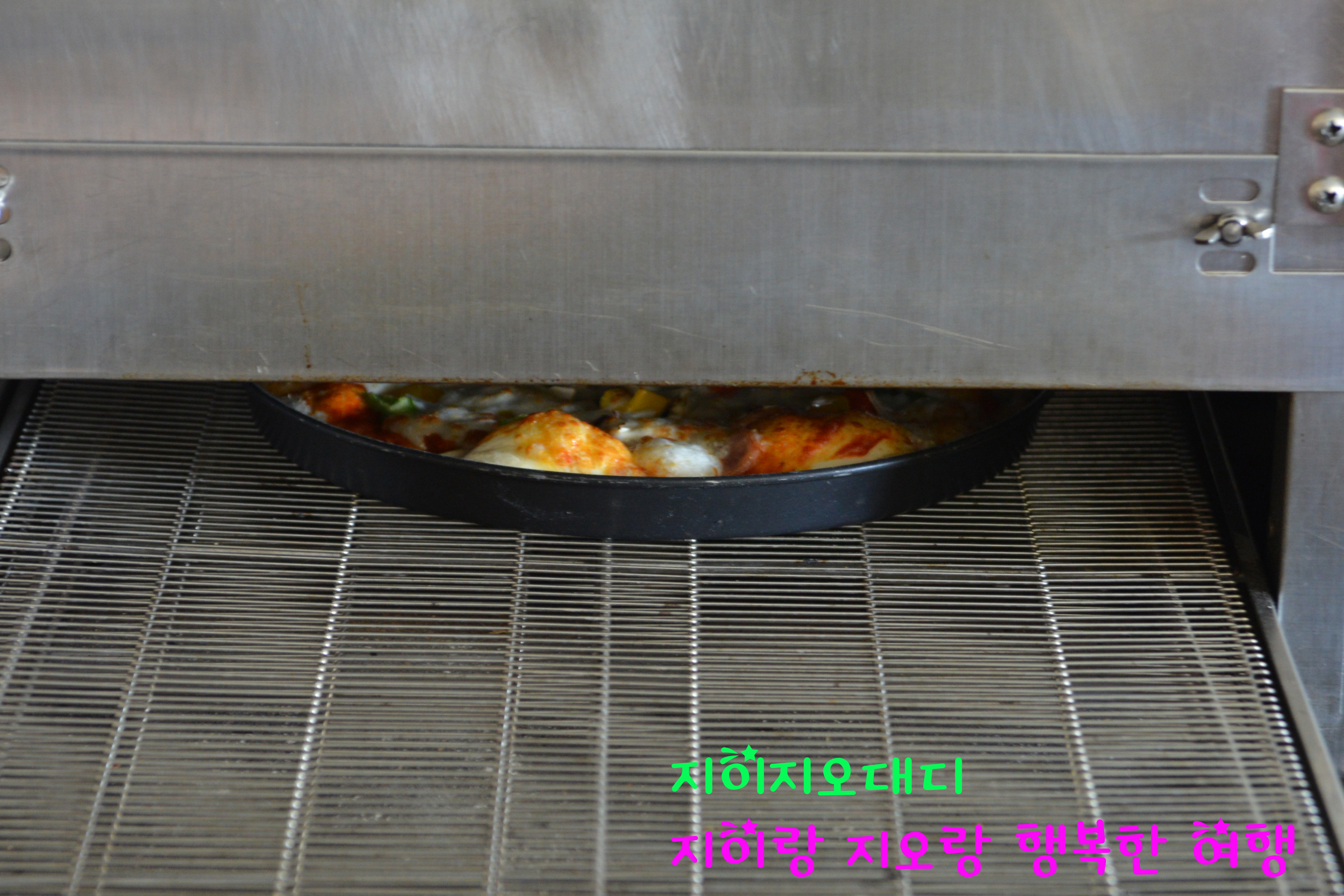 준비된 피자를 오븐에 넣고 5분만 기다리면 완성품이 나옵니다..