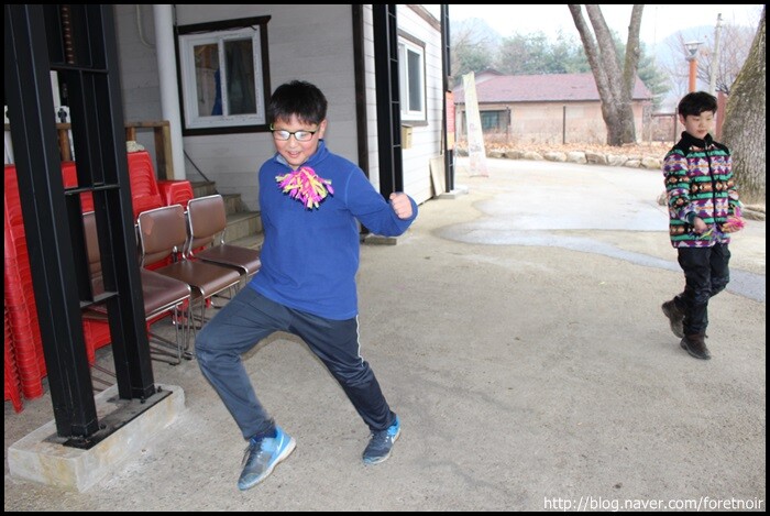 제기를 만들고 나자 빨리 제기가 차고 싶어 엉덩이가 들썩이는 아이들.