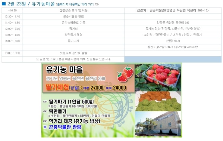 양평농촌나드리, 양평 딸기체험축제, 유기농 마을