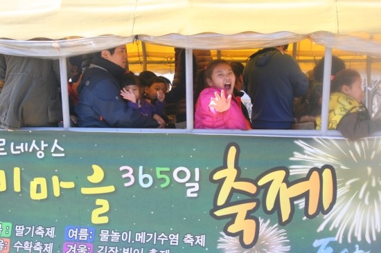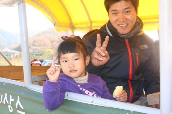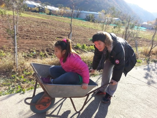 아빠가 태워주는 수레도 타고 김장체험을 기다립니다