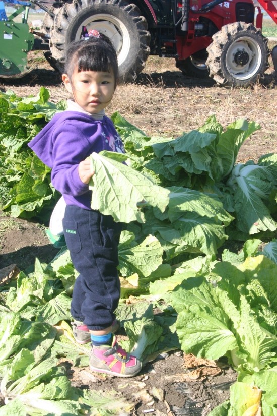 오늘 우리가 김장할 배추를 직접 혜원,려원이가 뽑는데