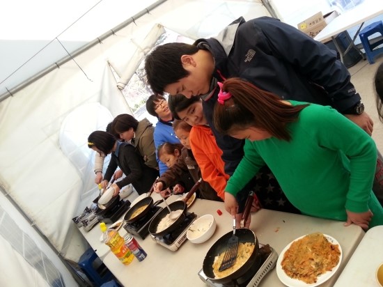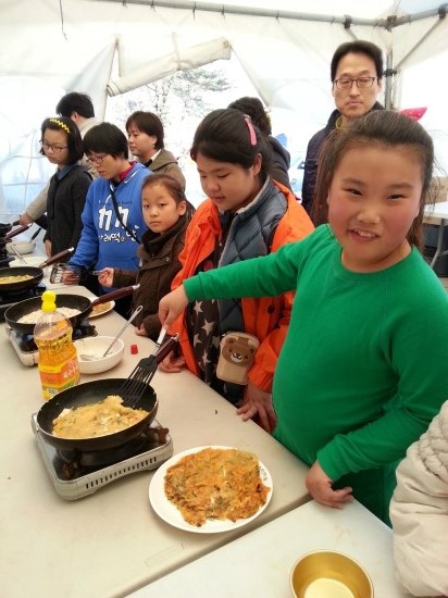 모든 체험을 마지막으로 양평막걸리와 함께 김치전을 만들어서 먹었어요