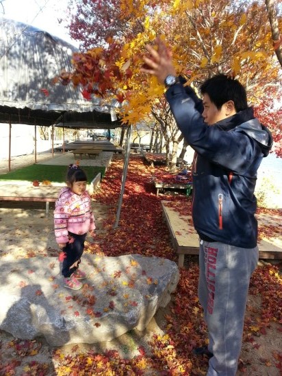 아빠와 려원이는 단풍놀이가 한참입니다