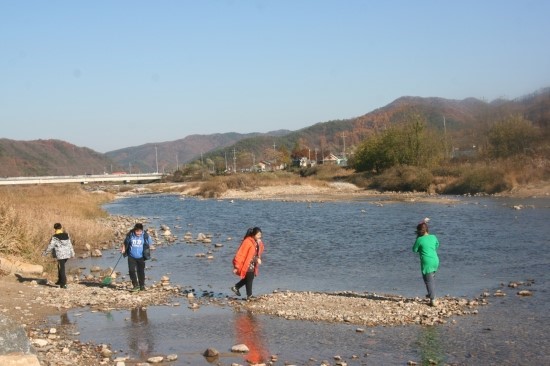 물을 그냥 지나칠리 없지요...뛰어놀기,돌만지기,물만지기,서울에서 못하는 거니 많이하거라