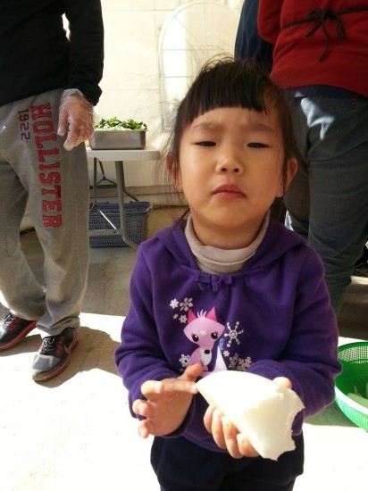 혜원이는 튼실한 배추를 확뽑고 -려원이는 입파리를 뜯어왔어요 1개만 먹음 된답니다 ^^