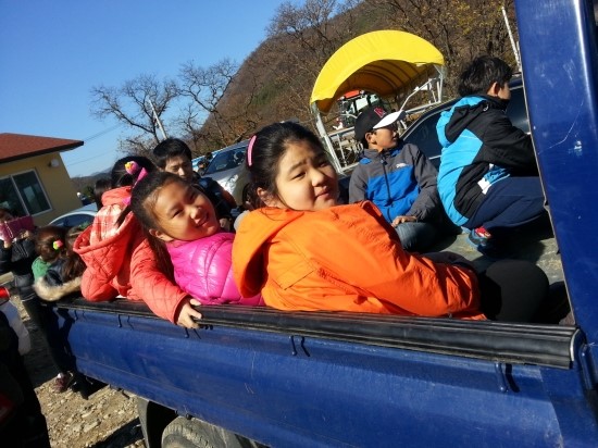 아이들 트럭을 타고 다니는 농촌마을 너무 좋아합니다~!!배추뽑아서 마을도착