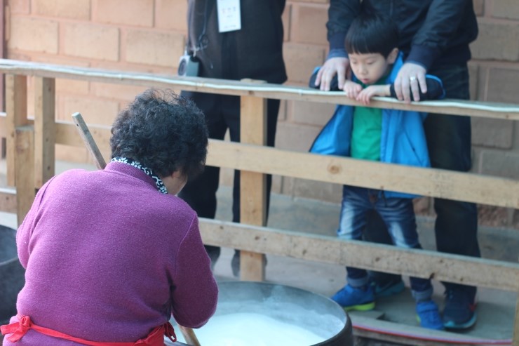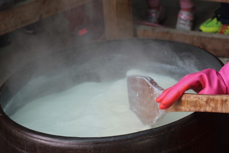 우리가 여러 체험을 즐기는 사이 만들어놓았던 떡이 쪄서 나왔어요.