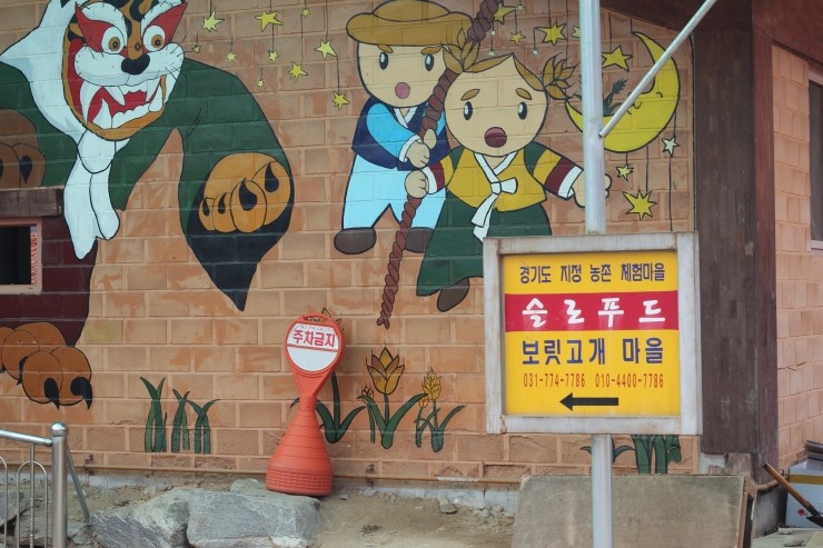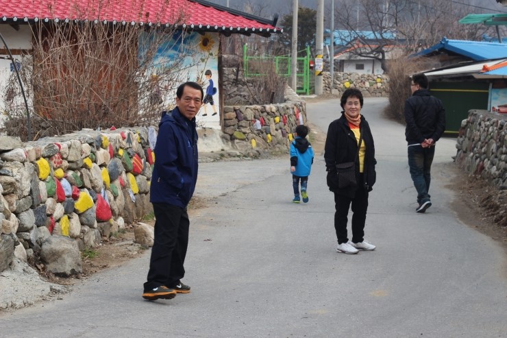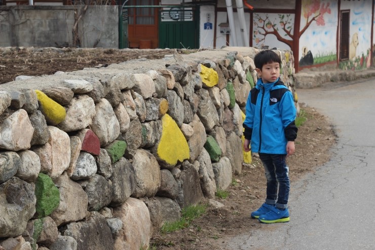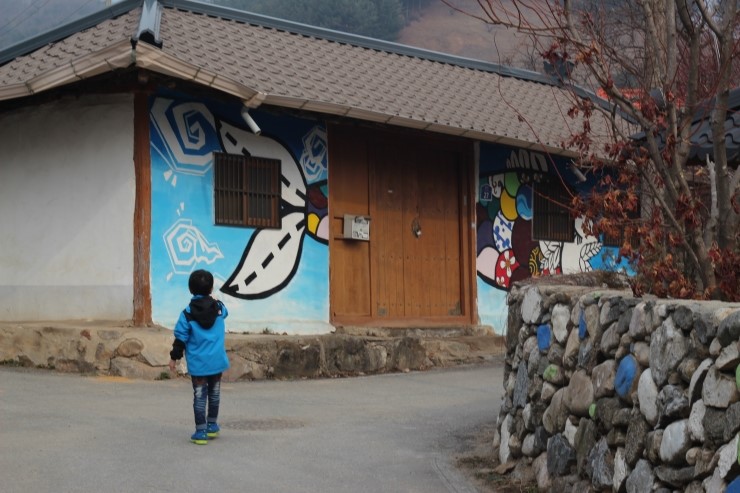 마을에 들어서자 예쁜 벽화와 알록달록한 돌담길이