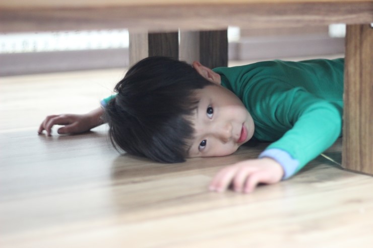그러다 체험관에 들어가서 아무도 없는 틈을 타서 슬라이딩을 하며 탁자밑을 터널이라 지나가기도 하고--;