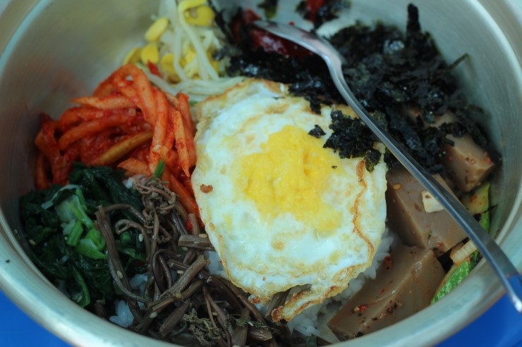 보릿고개 마을에서는 갖가지 나물과 계란후라이를 얹어 맛난 비빔밥을 제공해 주시네요.